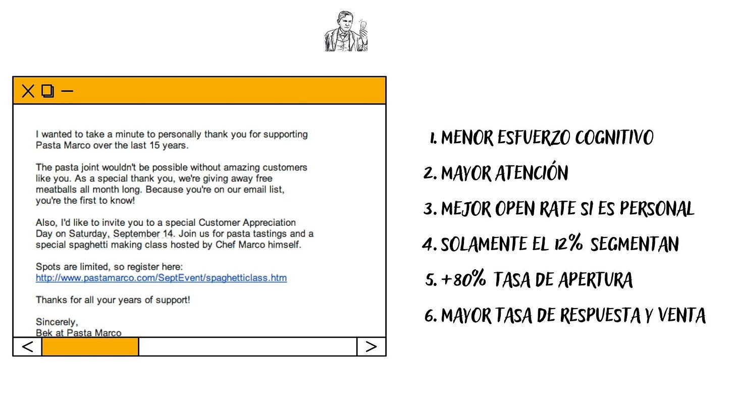 Varios estudios confirman que los email directos y personalizados obtienen un +80% de tasas de respuesta vs un email diseñado, de email marketing
